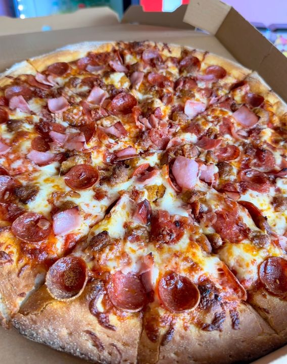 A classic red sauce base loaded with pepperoni, ham, bacon, and sausage. Perfect for meat lovers craving a hearty, savory pizza.
