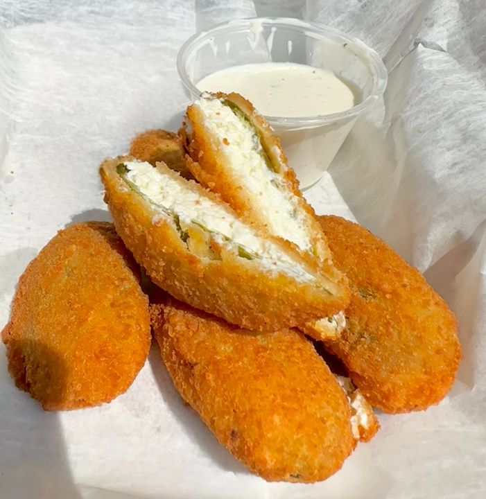 Cream cheese-stuffed jalapeños, coated in crispy golden breading and fried to perfection.