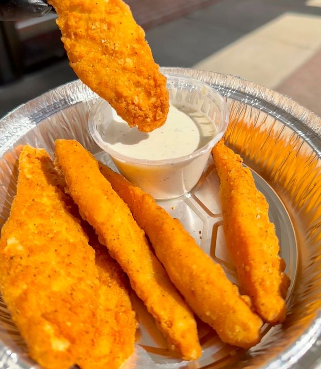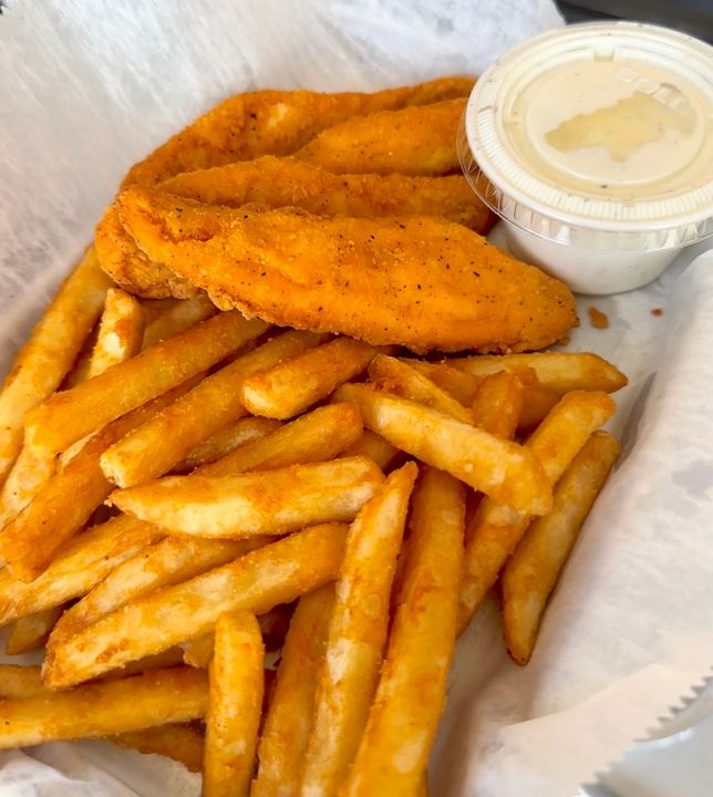 A hearty basket of crispy chicken tenders paired with our crispy battered fries, served with your choice of sauce.
