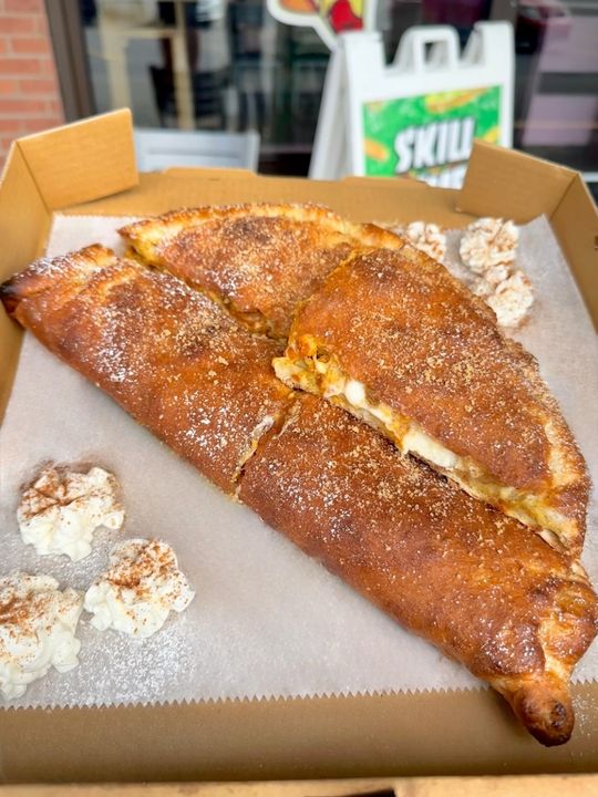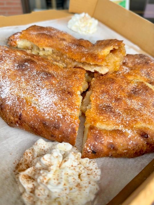 Sweet Apples, buttery Cinnamon Streusel stuffed inside a sweet crust served with dollops of Cannoli cream to dip