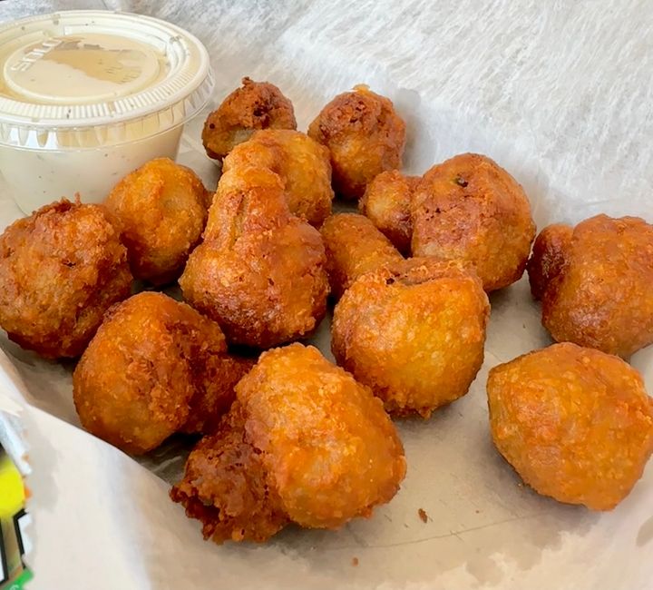 Golden fried nuggets filled with sweet creamed corn—crispy outside, soft and sweet inside.